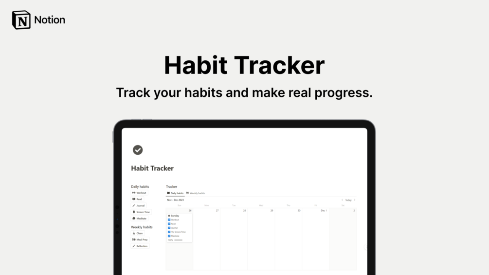 Add your habits, check them off, and track your progress with Notion Habit Tracker.